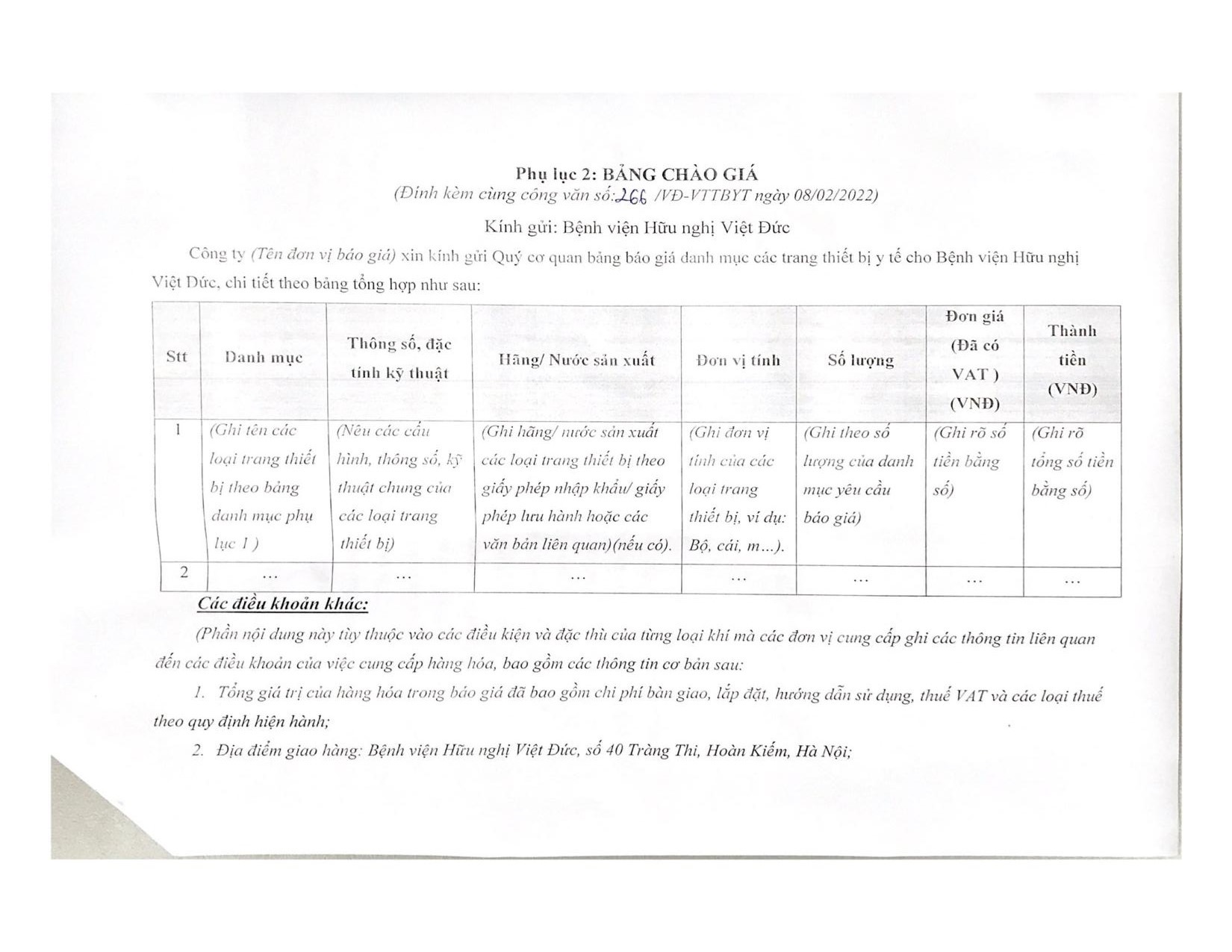 Bệnh viện Việt Đức mời chào giá trang thiết bị y tế