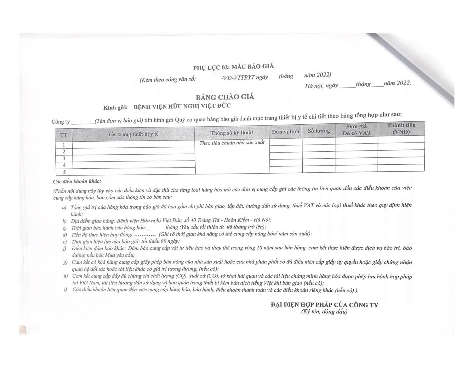 Bệnh viện Hữu nghị Việt Đức mời chào báo giá thiết bị y tế