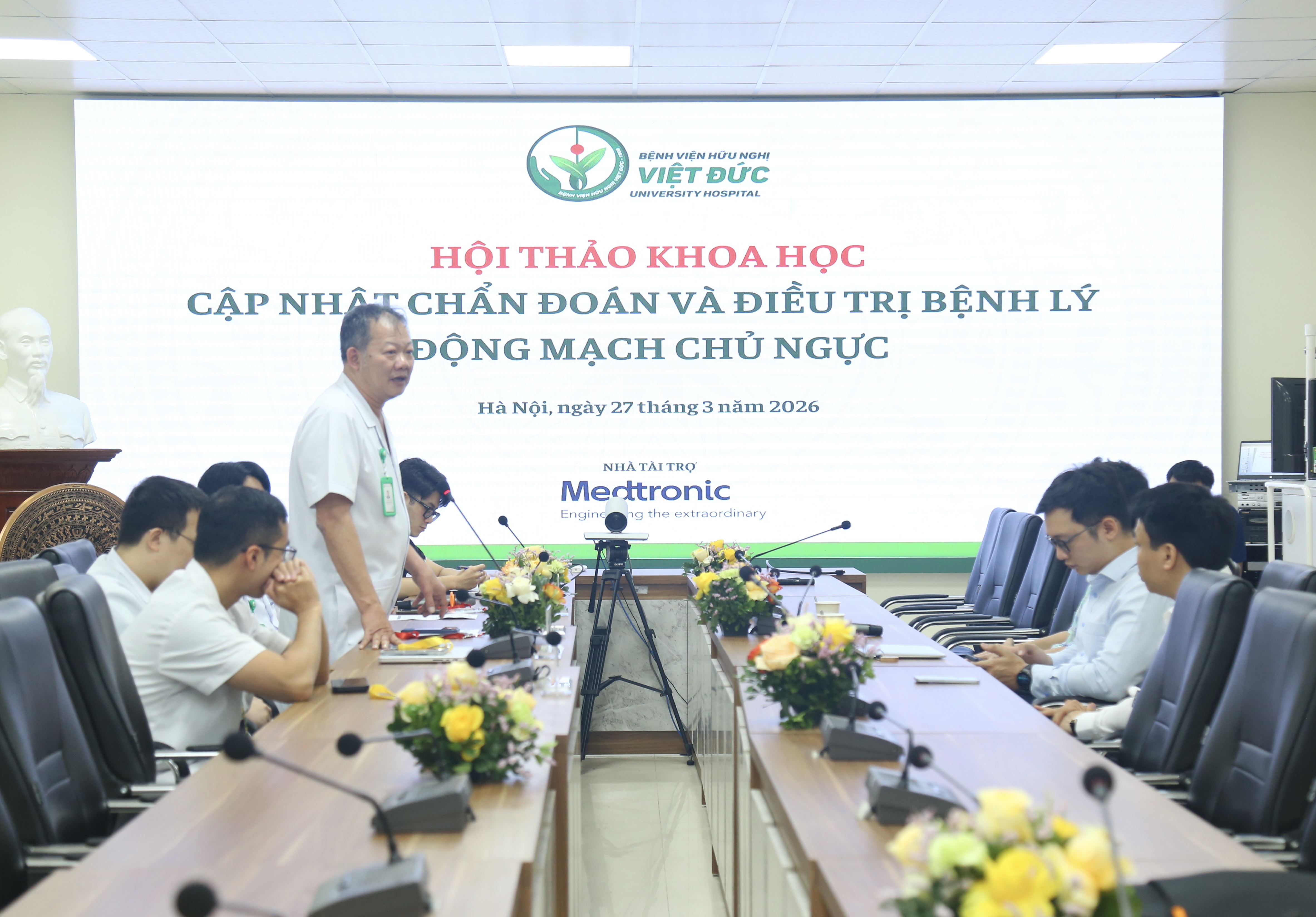 Ngày 27/03/2026, Bệnh viện Hữu nghị Việt Đức tổ chức Hội thảo khoa học “Cập nhật chẩn đoán và điều trị bệnh lý động mạch chủ ngực”. Hội thảo là diễn đàn chuyên môn quan trọng nhằm cập nhật kiến thức y khoa, chia sẻ kinh nghiệm thực tiễn và các tiến bộ kỹ thuật, góp phần nâng cao chất lượng điều trị cho người bệnh mắc bệnh lý động mạch chủ ngực – một trong những nhóm bệnh lý nguy hiểm, có nguy cơ tử vong cao nếu không được phát hiện và xử trí kịp thời.