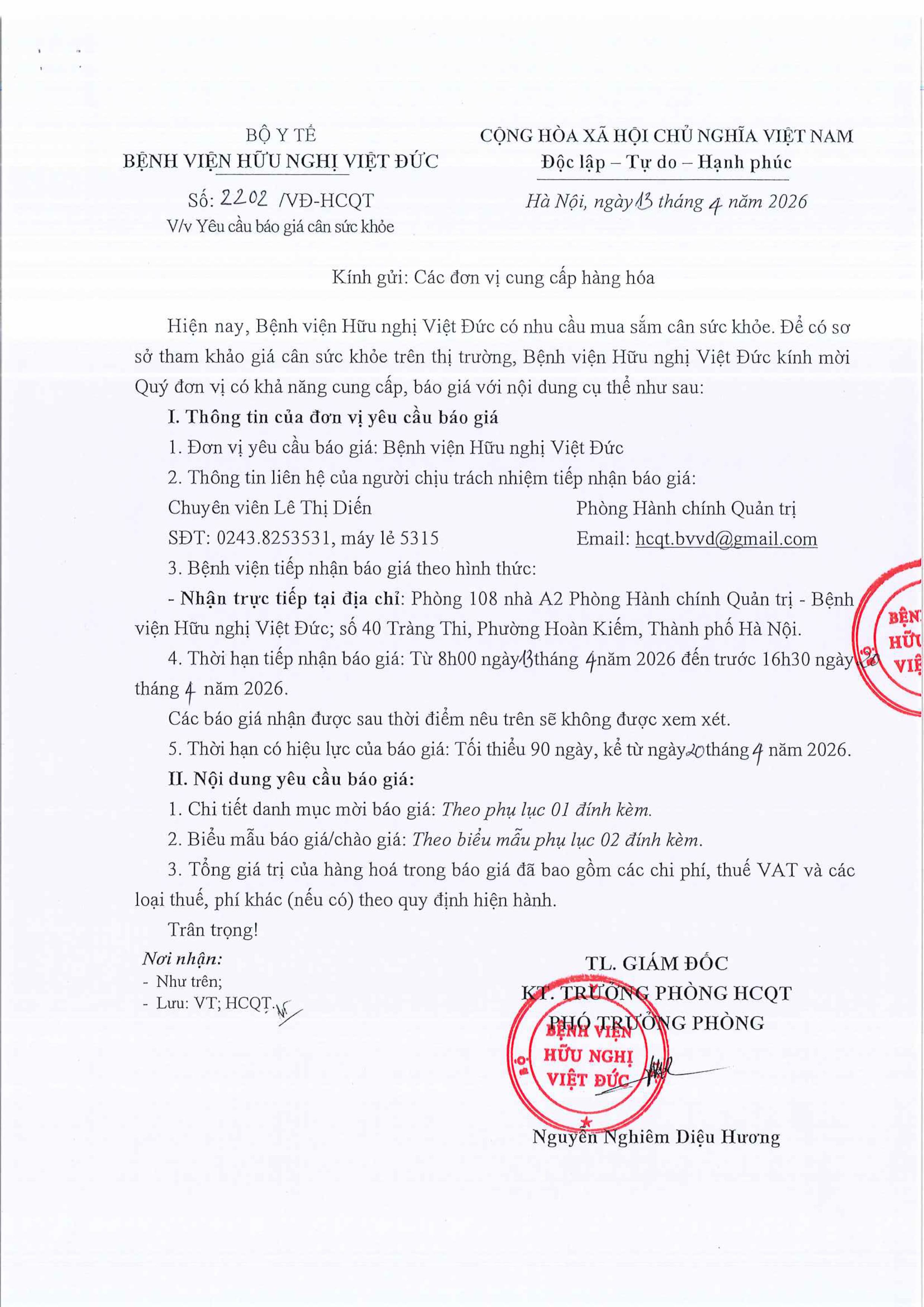 Hiện nay, Bệnh viện Hữu nghị Việt Đức đang có nhu cầu mua giấy màu in cách thức phẫu thuật và chứng nhận phẫu thuật. Để có thêm cơ sở…
