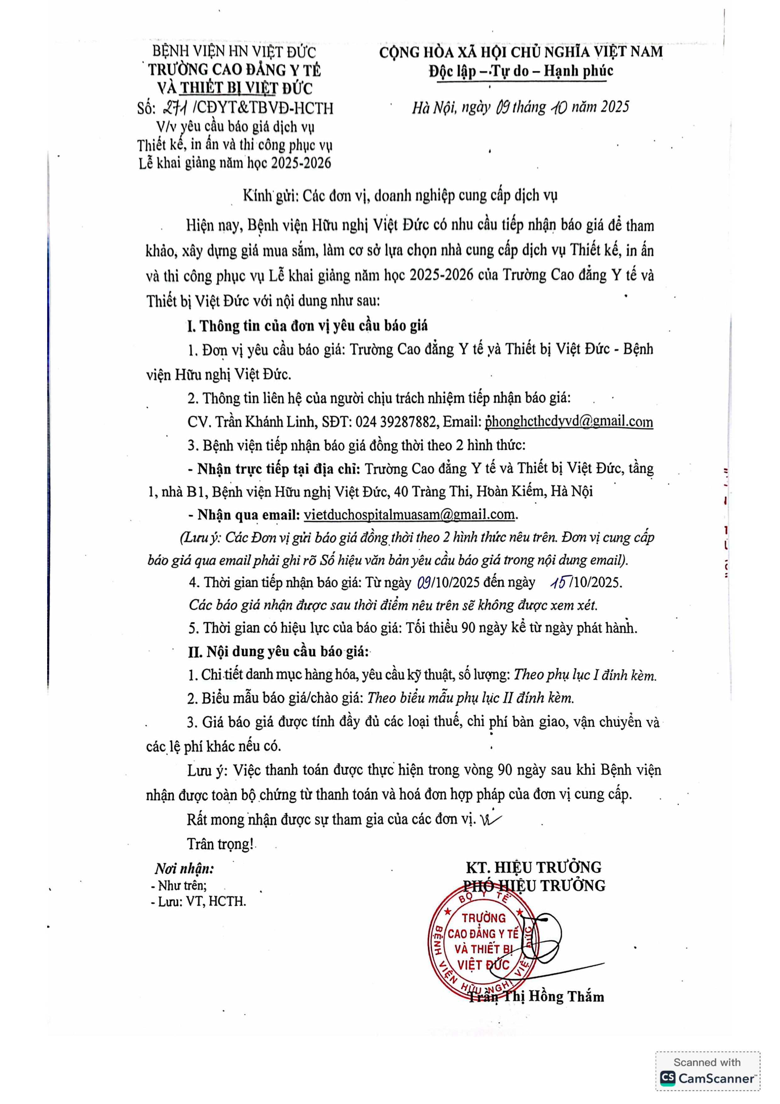 Bệnh viện Hữu nghị Việt Đức có nhu cầu báo giá dịch vụ Thiết kế, in ấn và thi công phục vụ Lễ khai giảng năm học 2025-2026