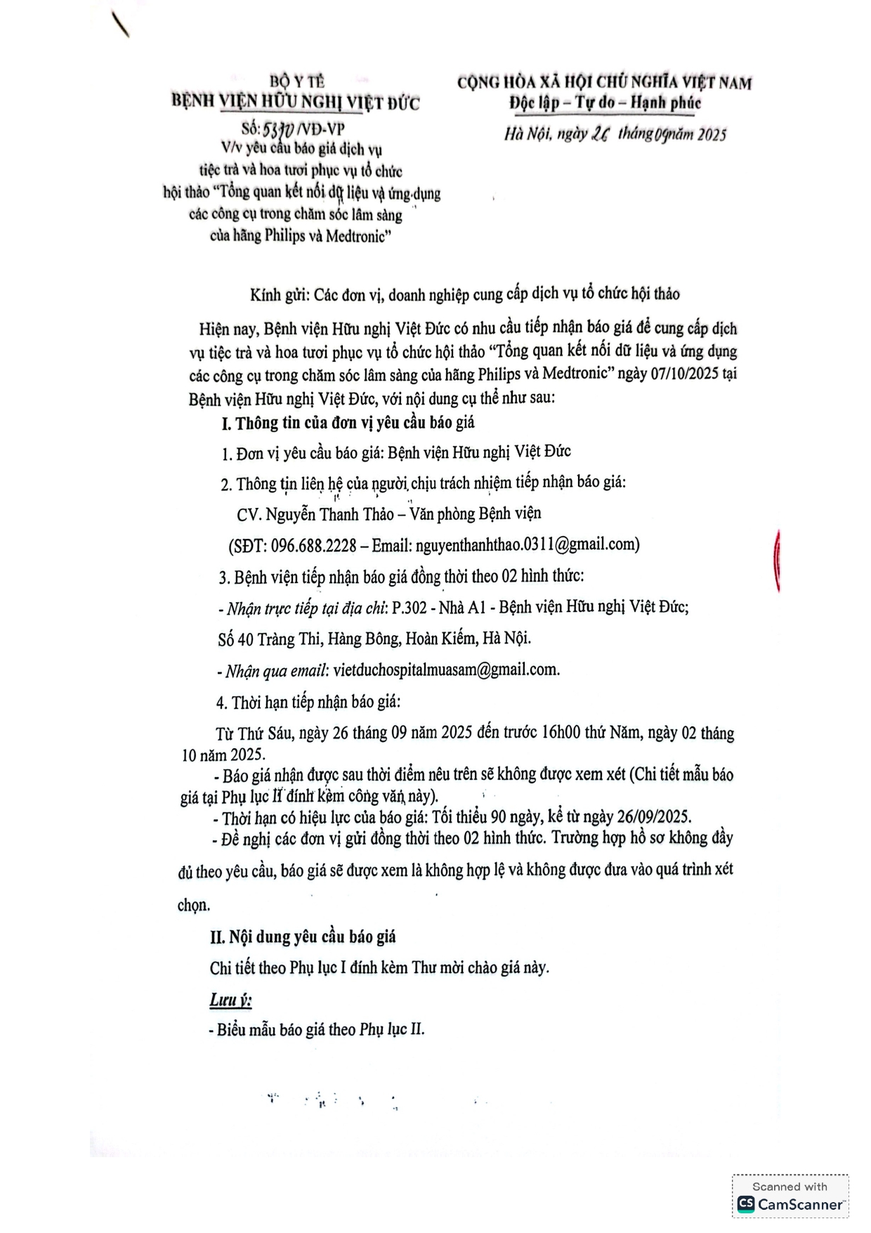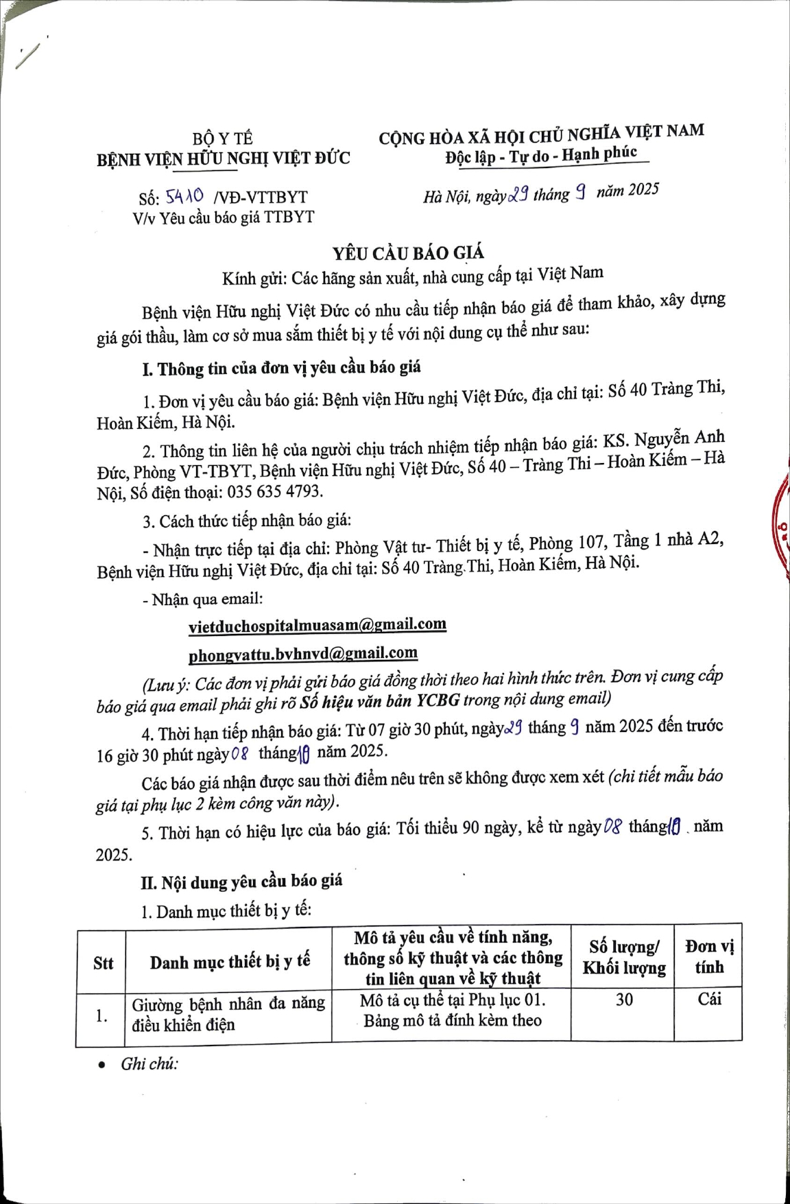 Bệnh viện Hữu nghị Việt Đức mời chào giá TTBYT