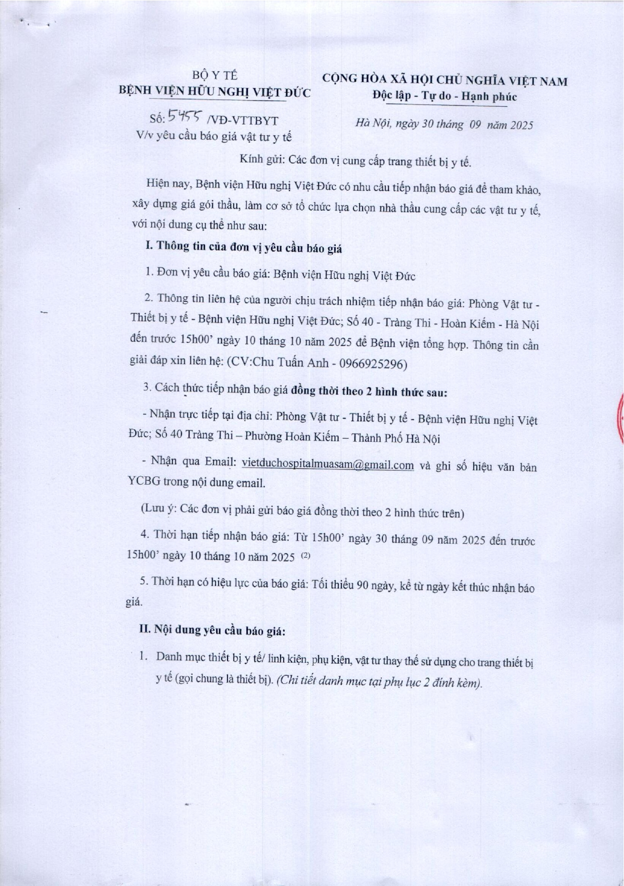 Bệnh viện Hữu nghị Việt Đức mời chào giá vật tư y tế