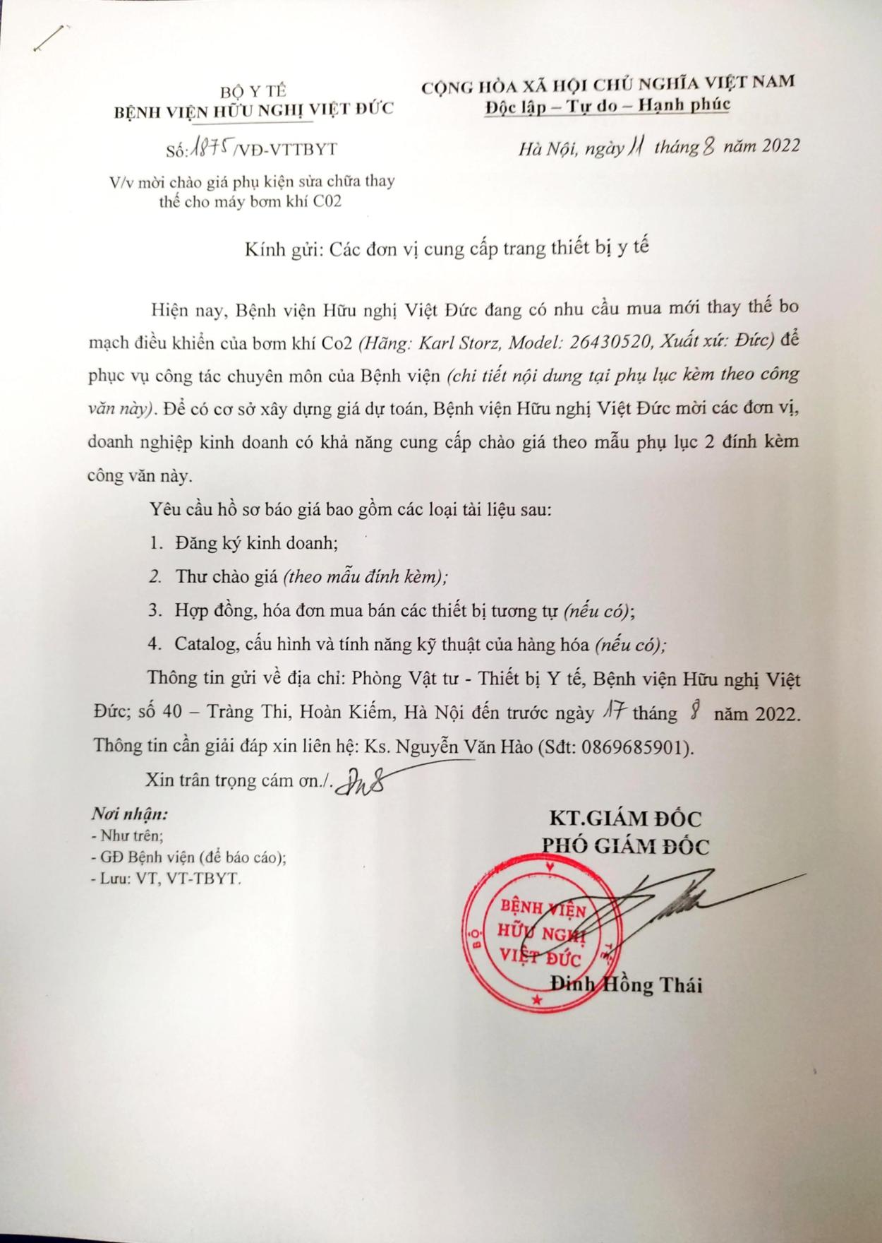 Bệnh viện Hữu nghị Việt Đức mời chào giá phụ kiện sửa chữa thay thế cho máy bơm khí C02