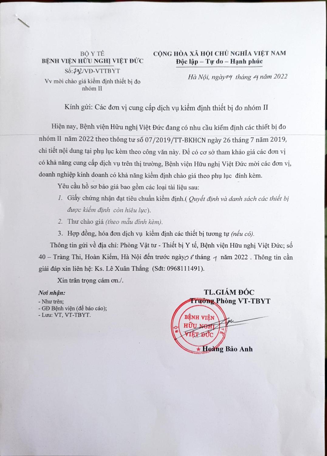 Bệnh viện Việt Đức mời chào giá kiểm định thiết bị đo nhóm II