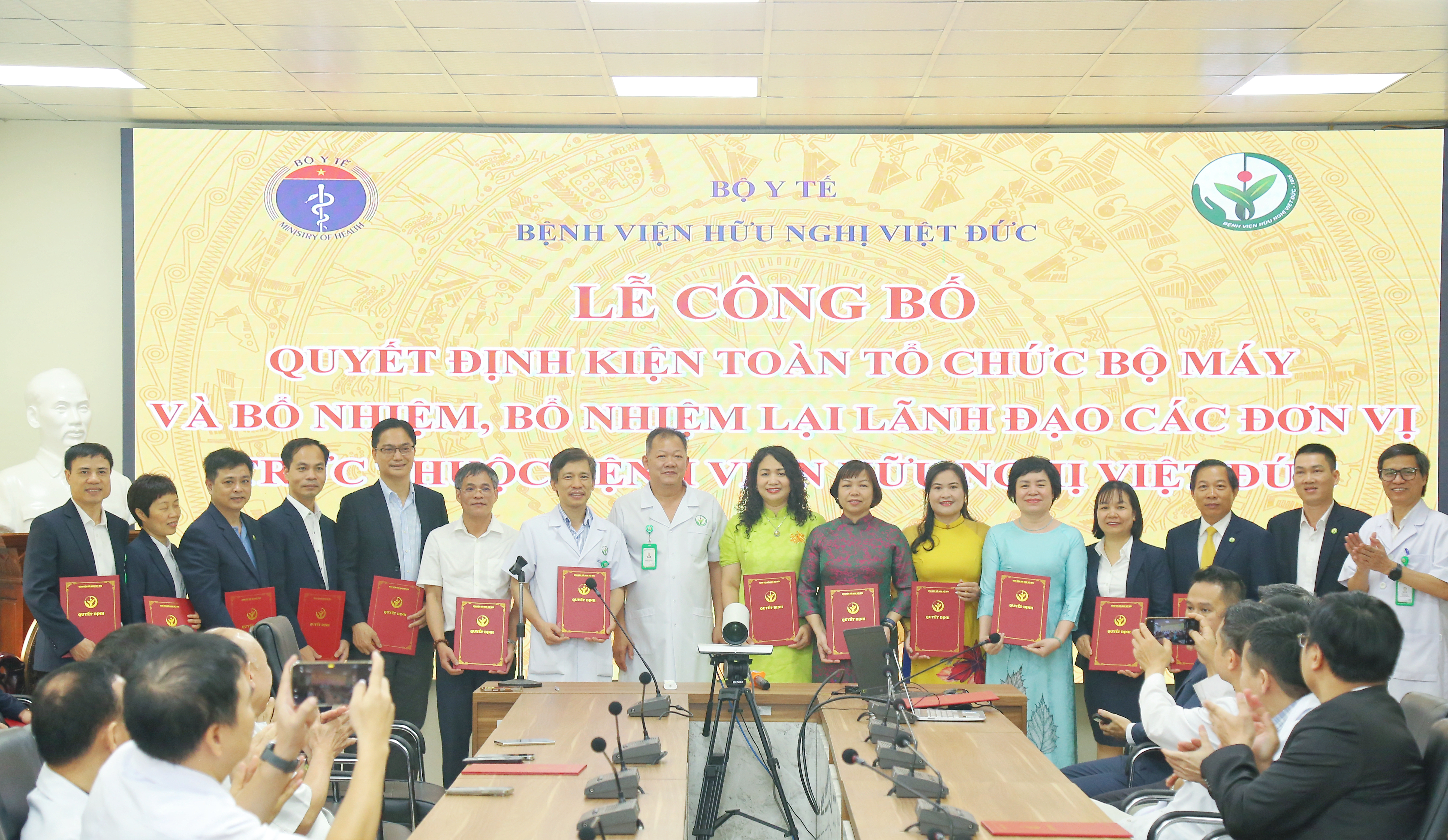 Công bố Quyết định kiện toàn tổ chức bộ máy và chúc mừng các cán bộ được bổ nhiệm, bổ nhiệm lại lãnh đạo các đơn vị thuộc, trực thuộc Bệnh viện Hữu nghị Việt Đức