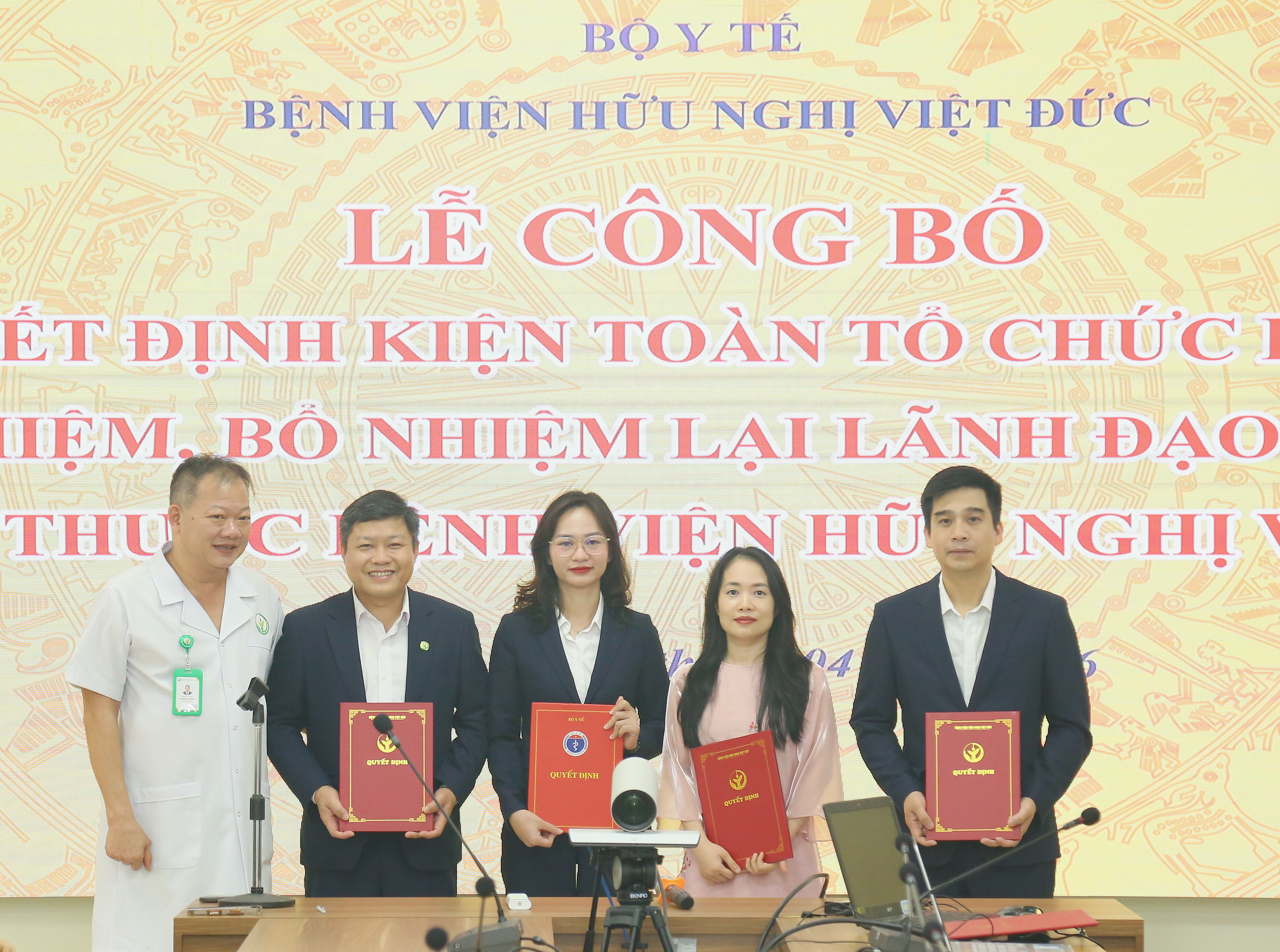Sáng ngày 15/04/2026, Bệnh viện Hữu nghị Việt Đức đã long trọng tổ chức lễ công bố quyết định kiện toàn tổ chức bộ máy và chúc mừng các đồng chí được bổ nhiệm và bổ nhiệm lại giữ chức vụ lãnh đạo, quản lý tại các đơn vị thuộc, trực thuộc bệnh viện.
