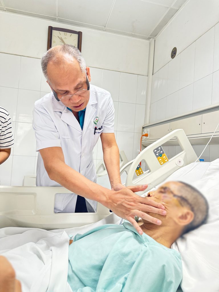 Trước tình trạng nguy cấp, PGS.TS Nguyễn Hồng Hà – Trưởng khoa Phẫu thuật Hàm mặt, Tạo hình và Thẩm mỹ đã trực tiếp chỉ đạo hội chẩn khẩn với sự phối hợp của nhiều chuyên khoa: Gây mê hồi sức đảm bảo kiểm soát đường thở và an toàn trong mổ; Tim mạch lồng ngực xử lý tình trạng chấn thương ngực, ê-kíp vi phẫu hàm mặt xử lý tình trạng chấn thương vết thương hàm mặt nặng, phức tạp và phục hồi các cấu trúc thần kinh và ống tuyến bị tổn thương dưới kính hiển vì độ phóng đại cao. Hội đồng chuyên môn thống nhất chỉ định mổ cấp cứu ngay trong đêm nhằm kiểm soát chảy máu, bảo tồn chức năng và ngăn ngừa biến chứng lâu dài cho người bệnh.