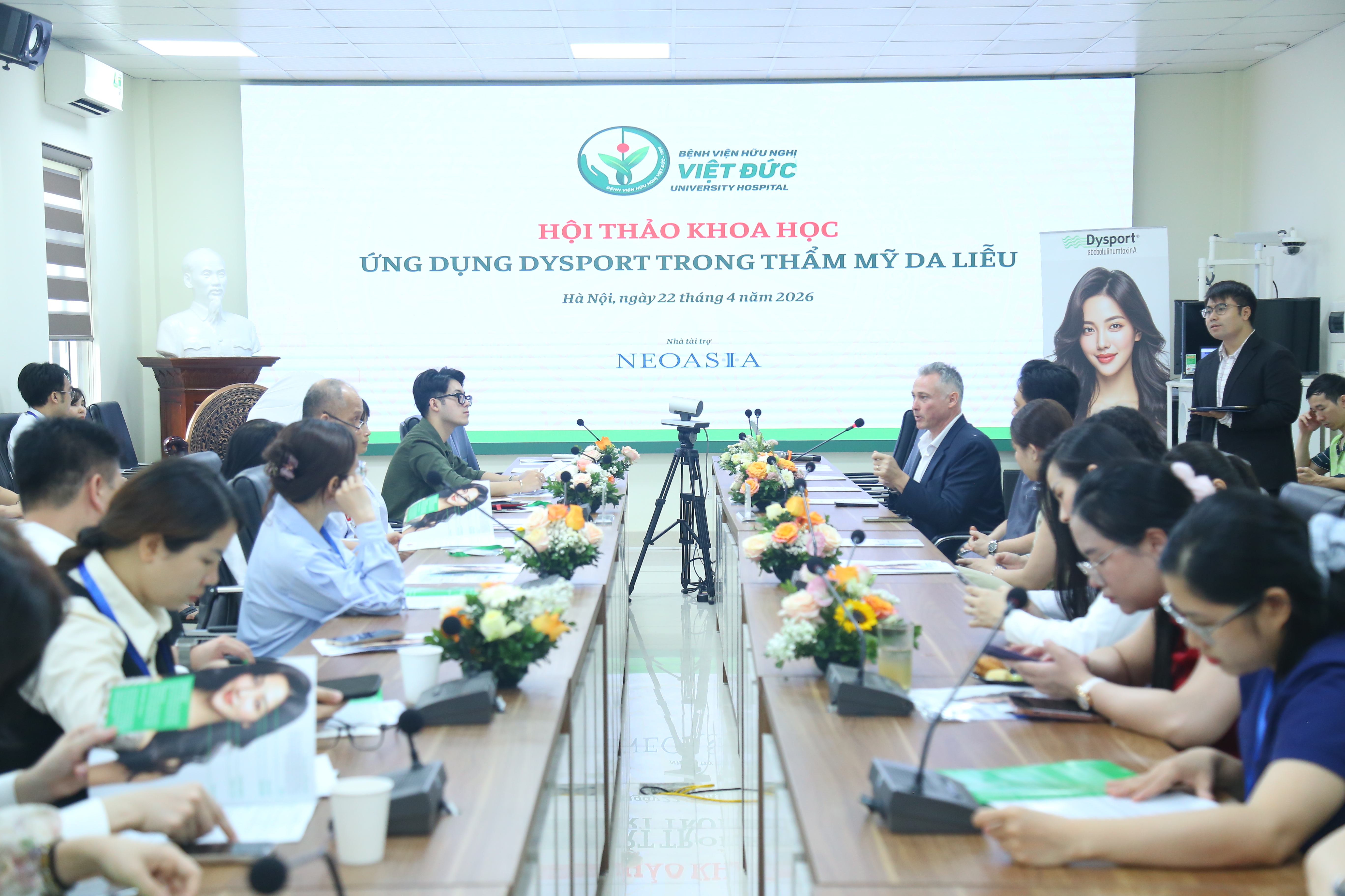 Sáng ngày 22/4, Bệnh viện Hữu nghị Việt Đức đã tổ chức Hội thảo khoa học “Ứng dụng Dysport trong thẩm mỹ da liễu”, thu hút sự tham gia của đông đảo chuyên gia, bác sĩ trong lĩnh vực phẫu thuật tạo hình và da liễu trên cả nước.