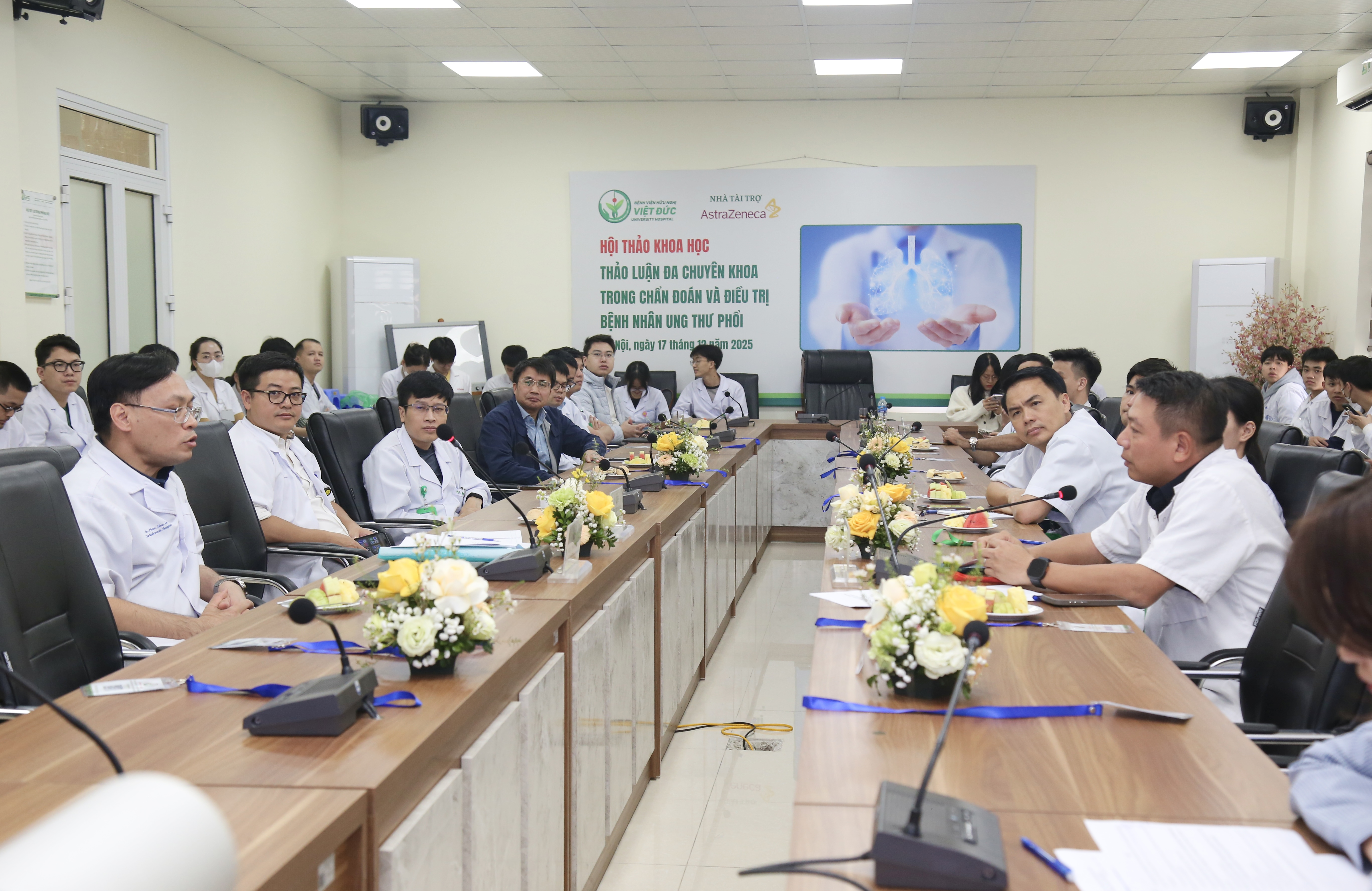 Chiều ngày 17/12/2025, tại Bệnh viện Hữu nghị Việt Đức đã diễn ra Hội thảo khoa học “Thảo luận đa chuyên khoa trong chẩn đoán và điều trị bệnh nhân ung thư phổi – Buổi 3: Quản lý bệnh nhân ung thư phổi không tế bào nhỏ (UTPKTBN) giai đoạn III”. Hội thảo được tổ chức nhằm cập nhật kiến thức, trao đổi kinh nghiệm và tăng cường phối hợp liên chuyên khoa trong điều trị ung thư phổi – một bệnh lý có tỷ lệ mắc cao tại Việt Nam.