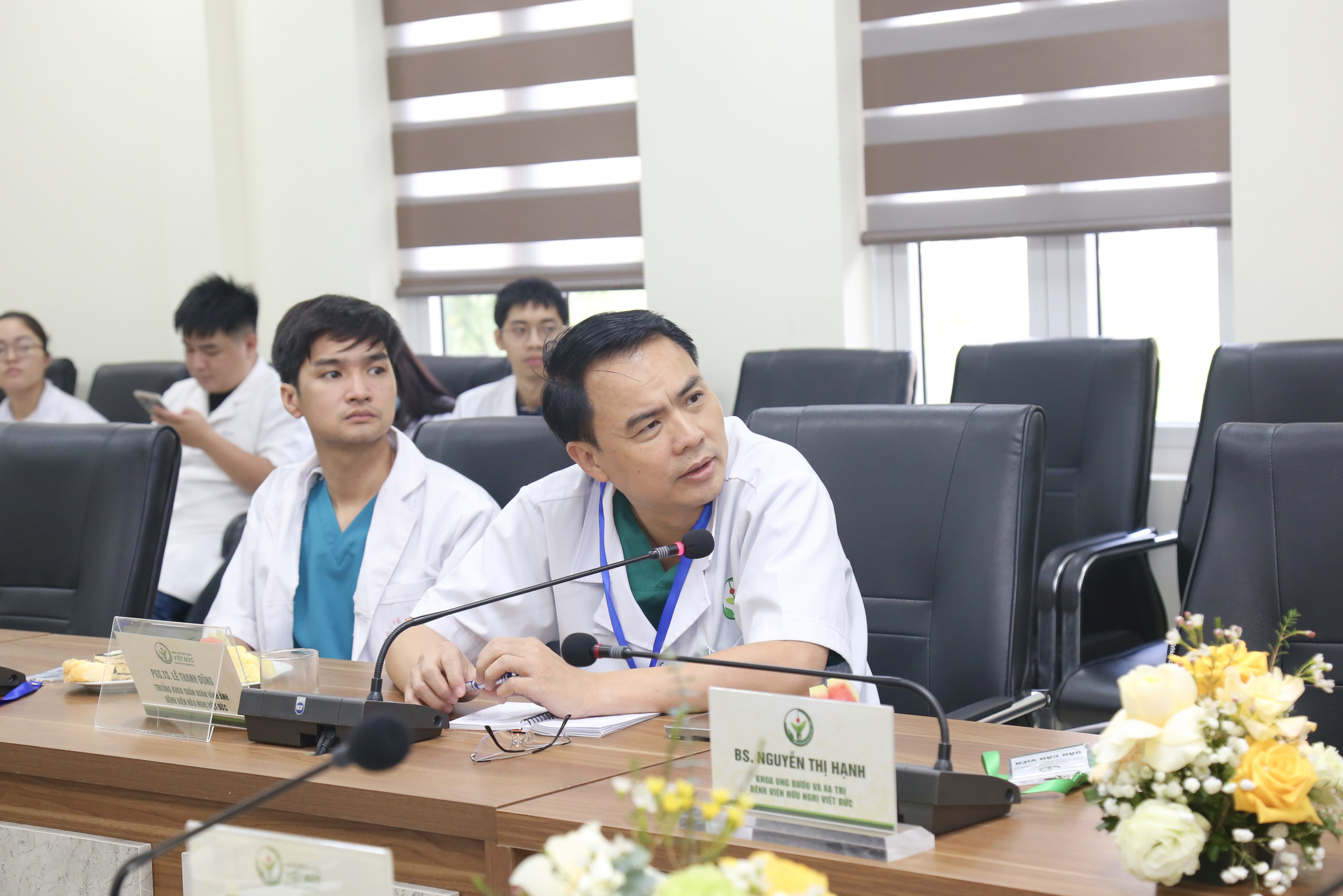 Tham dự hội thảo có các chuyên gia của Bệnh viện Hữu nghị Việt Đức: TS.BS Phạm Gia Anh – Trưởng khoa Ung bướu & Xạ trị; PGS.TS Phạm Hữu Lư – Phó Trưởng khoa Ngoại Tim mạch và Lồng ngực; PGS.TS Lê Thanh Dũng – Trưởng khoa Chẩn đoán hình ảnh; TS.BS Nguyễn Sỹ Lánh – Trưởng khoa Giải phẫu bệnh và các bác sĩ chuyên khoa.