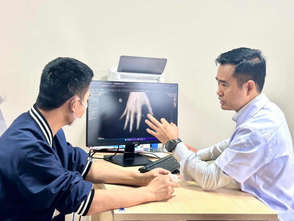 Tại Bệnh viện Hữu nghị Việt Đức, các chuyên gia đã đánh giá phần chi thể đứt rời và ghi nhận: phần chi thể đứt rời đã được sơ cứu – bảo quản đúng cách, khớp ngón tay còn mềm, cấu trúc mô được bảo toàn tốt. Bệnh viện lập tức hội chẩn đa chuyên khoa gồm phẫu thuật tạo hình thẩm mỹ, gây mê hồi sức, chấn thương chỉnh hình để đưa ra chiến lược xử trí tối ưu và quyết định thực hiện vi phẫu nối lại ngón tay cho người bệnh.