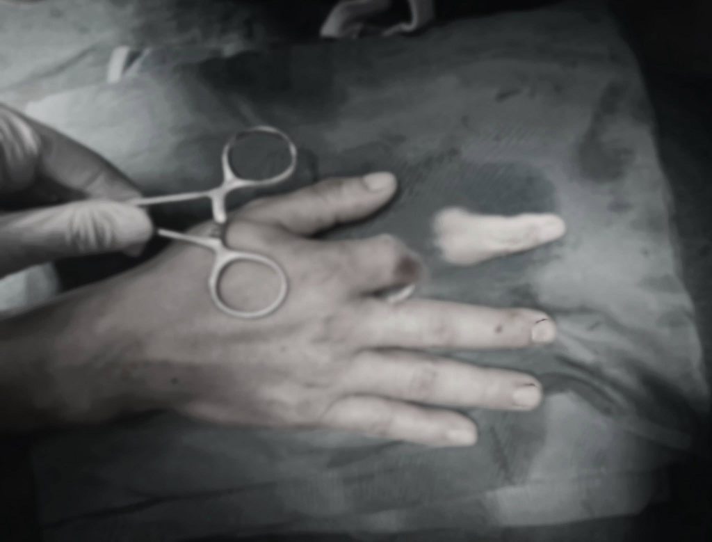 Hình ảnh ngón tay trỏ đứt rời của anh D trước phẫu thuật vi phẫu nối ngón tay