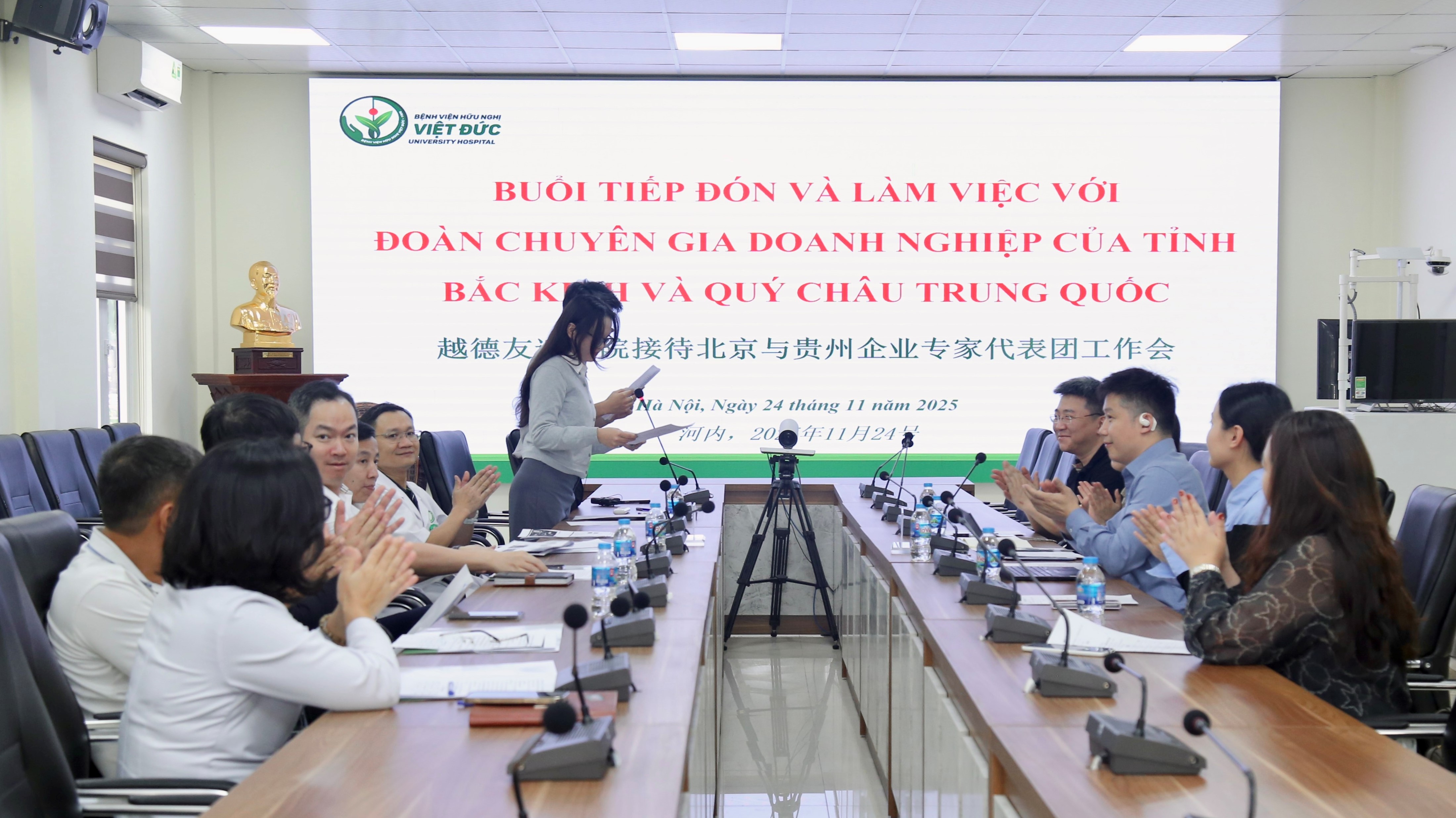 Chiều ngày 24/11/2025, Bệnh viện Hữu nghị Việt Đức tổ chức chương trình đón tiếp và làm việc với đoàn chuyên gia doanh nghiệp các tỉnh Bắc Kinh và Quý Châu (Trung Quốc) để trao đổi về các công nghệ tiên tiến, đặc biệt là ứng dụng robot trong lĩnh vực chấn thương chỉnh hình.