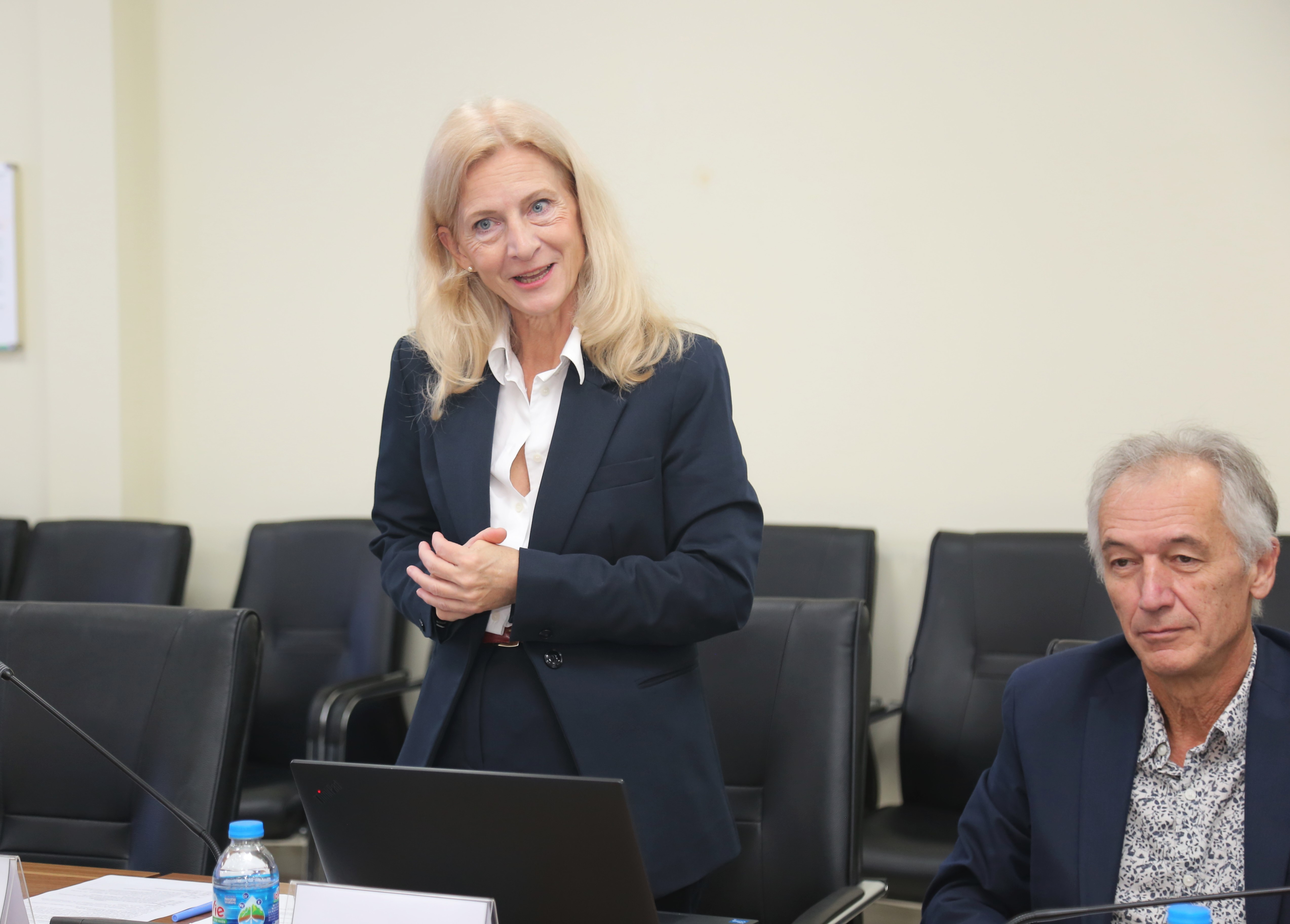 Bà Durand Roche Valerie – Tổng Giám đốc Bệnh viện Đại học Clermont Ferrand (Cộng hòa Pháp) phát biểu tại buổi làm việc
