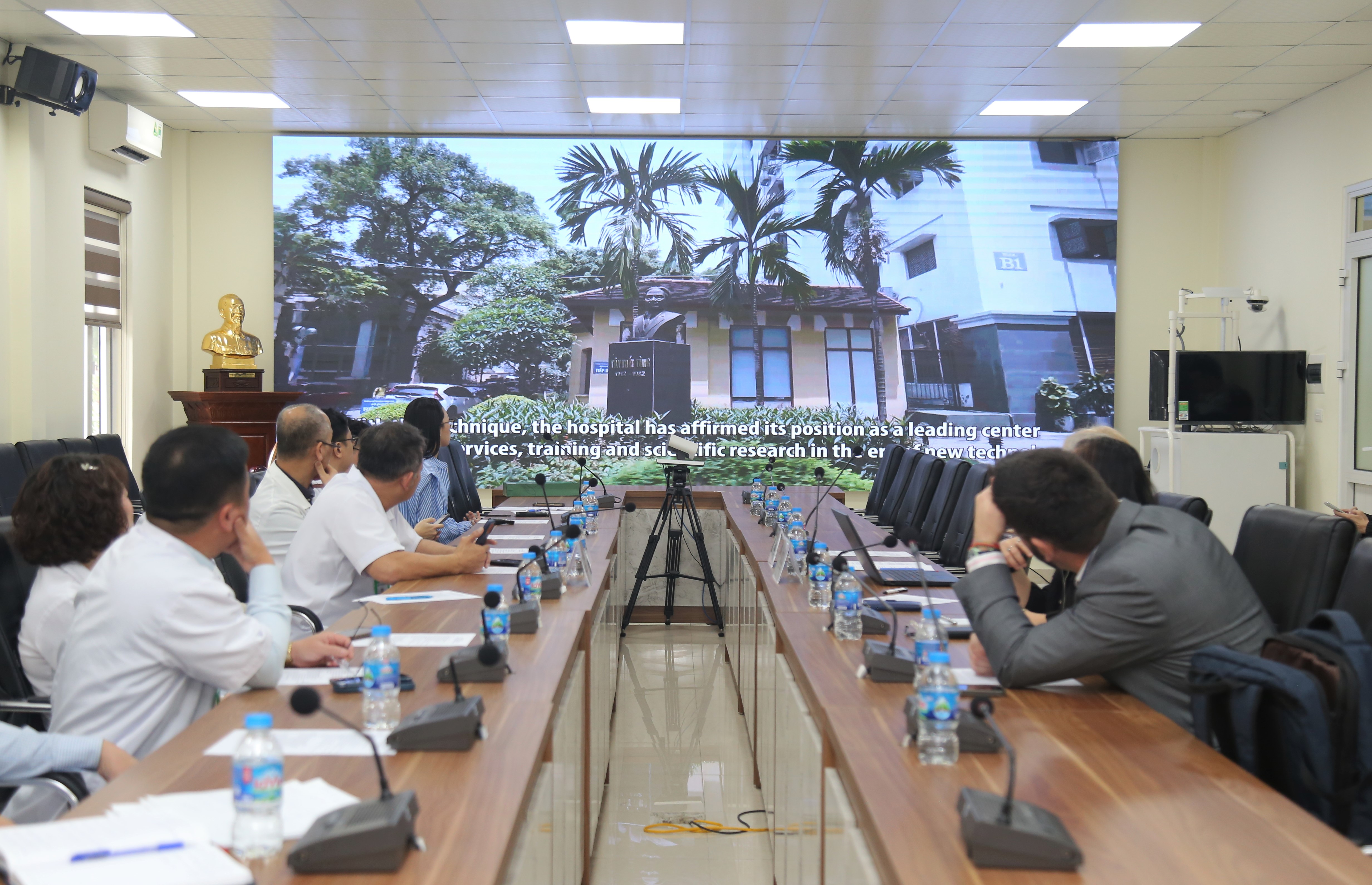 Đón tiếp đoàn chuyên gia, về phía Bệnh viện Hữu nghị Việt Đức có TS.BS Dương Đức Hùng – Giám đốc Bệnh viện; BSCKII Cấn Văn Sơn – Phó Giám đốc Trung tâm Khám bệnh – Cấp cứu và Điều trị ban ngày; TS.BS Đỗ Mạnh Hùng – Trưởng phòng Kế hoạch Tổng hợp; BSCKII Lê Văn Nam – Quyền Trưởng phòng Chỉ đạo tuyến, Trung tâm Đào tạo và Chỉ đạo tuyến; TS.BS Bùi Mai Anh – Phó Trưởng phòng Nghiên cứu khoa học; ThS Vũ Đặng Dung – Phó Trưởng phòng Tổ chức cán bộ; ThS Lê Minh Thu – Quyền Phó Chánh Văn phòng bệnh viện cùng đại diện khoa, phòng của bệnh viện.