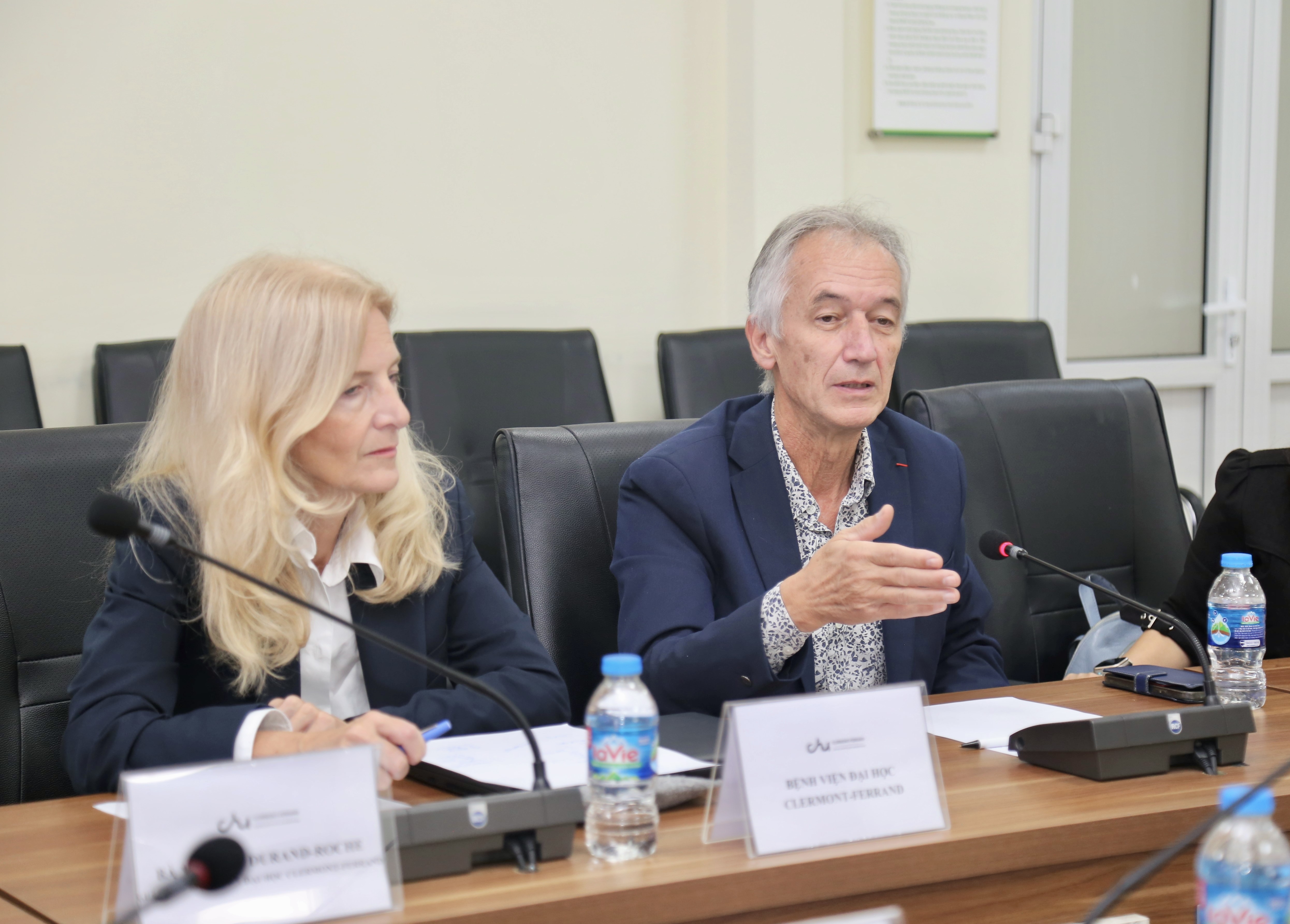 Đoàn chuyên gia Bệnh viện Đại học Clermont Ferrand (Cộng hòa Pháp) phát biểu tại buổi làm việc
