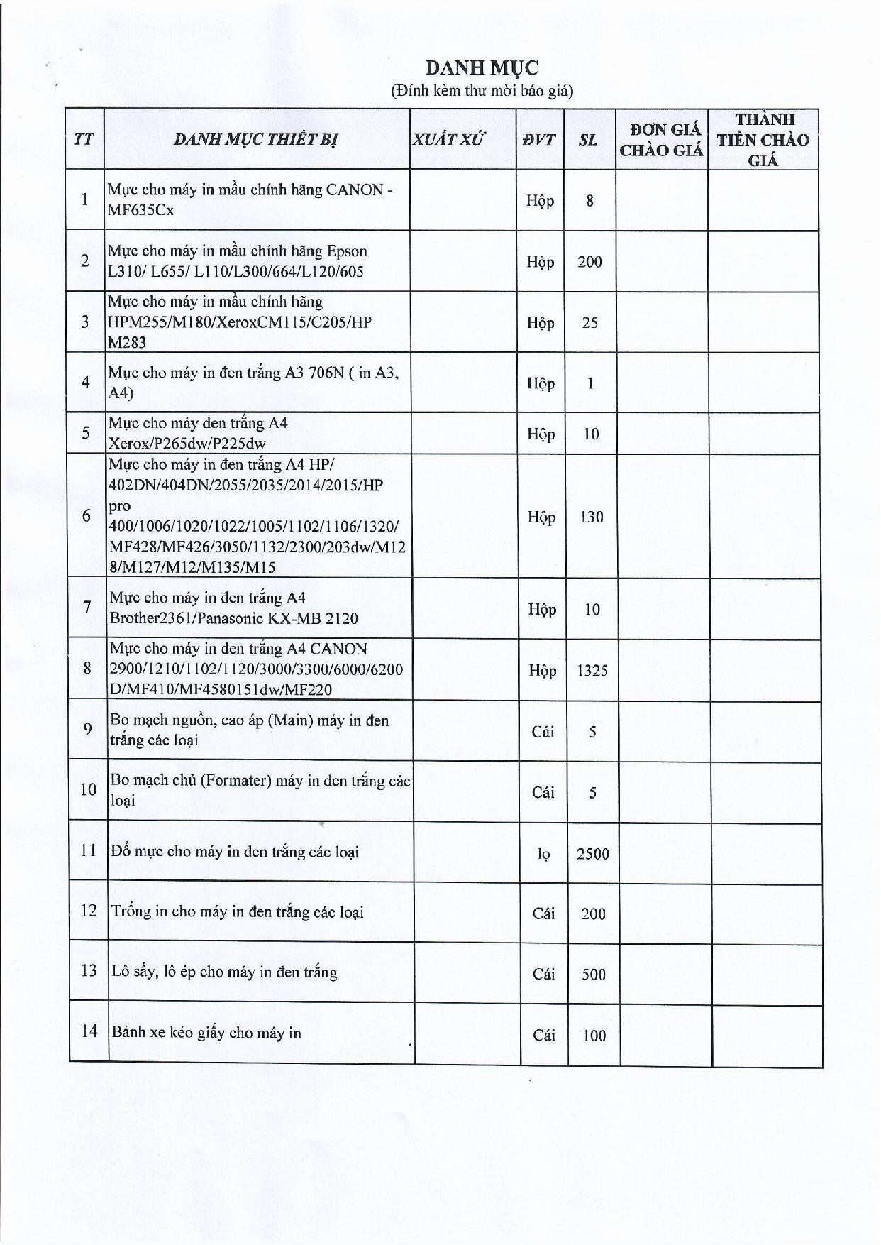 Bệnh viện Hữu nghị Việt Đức trân trọng thông báo và kính mời các Công ty gửi bản chào giá các danh mục (chi tiết kèm theo) để Bệnh viện có căn cứ tham mưu xây dựng kế hoạch lựa chọn nhà thầu.